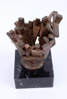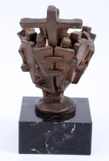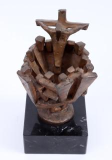 Thomas Roda, bronzen sculptuur van Jezus aan het kruis rustend op marmeren voetstuk, h.20 cm.