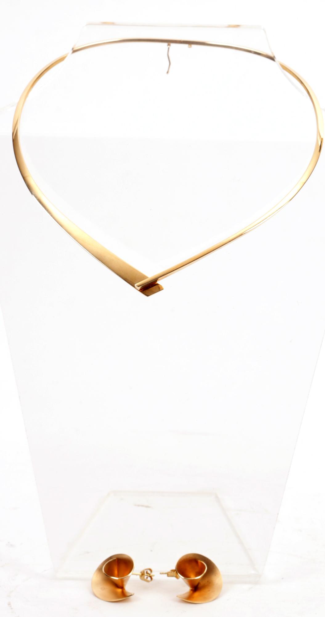 Jean Jacques Smeijsters, moderne 14 kt. gouden spangcollier met twee bijpassende oorhanger, 30,2 gram